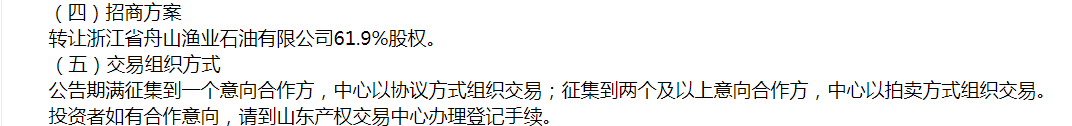 浙江省舟山漁業(yè)石油有限公司61.9%股權(quán)