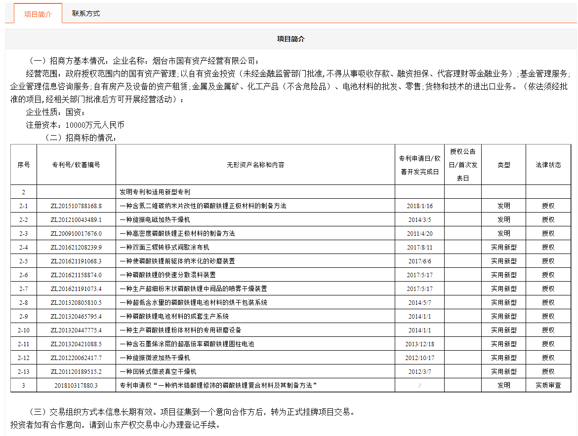 煙臺(tái)市國(guó)有資產(chǎn)經(jīng)營(yíng)有限公司所屬15項(xiàng)專利使用許可權(quán)